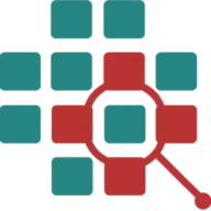 dr exame logo com uma arte com vários quadrados e o dr exame branco