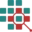 dr exame logo com uma arte com vários quadrados verdes e vermelhos, e o dr em vermelho e o exame em verde
